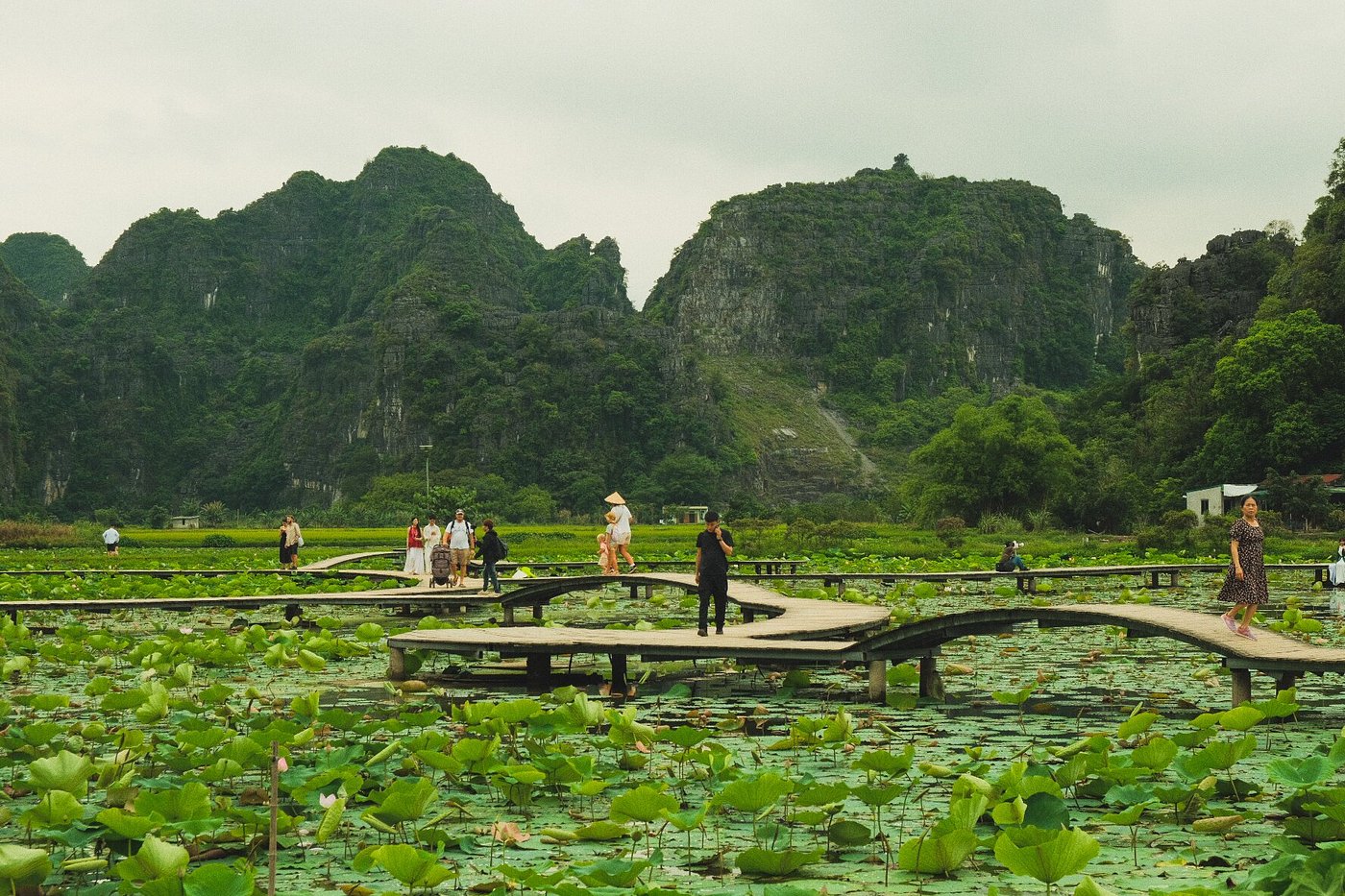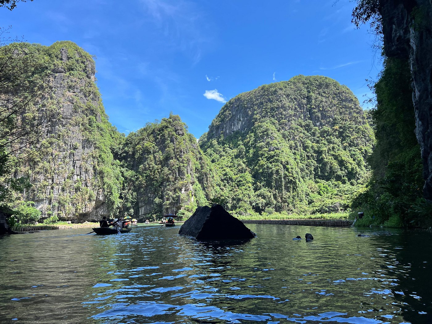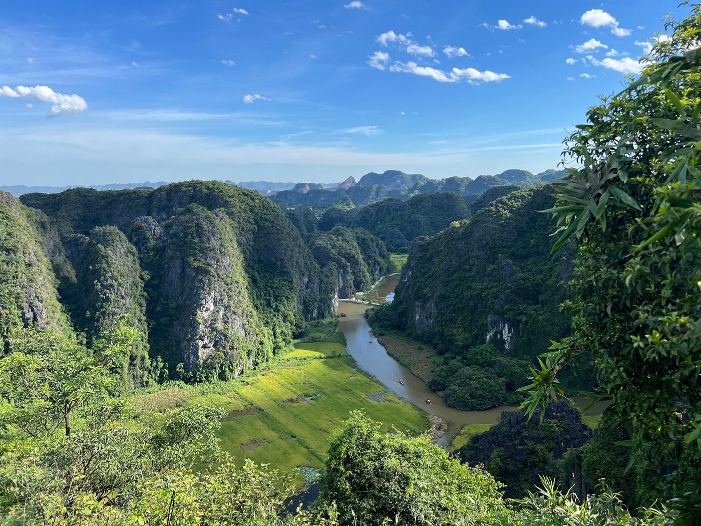 Visit Bai Dinh Pagoda Complex – Explore the largest Buddhist complex in Vietnam, famous for its awe – inspiring scale and sacred beauty. Walk through corridors lined with over 500 Arhat statues, admire the massive bronze Buddha statue (10 meters tall, 100 tons in weight). Boat Tour in Trang A Scenic Landscape – Cruise along crystal-clear rivers on a traditional sampan boat, gliding gently through mystical caves and under limestone arches draped in greenery. A UNESCO World Heritage Site, Trang An is peaceful, otherworldly, and unforgettable. Climb Mua Cave (Hang Múa) – Ascend to one of Ninh Binh’s most iconic viewpoints. From the top, soak in the spectacular scenery of Tam Coc valley and surrounding karst formations.
